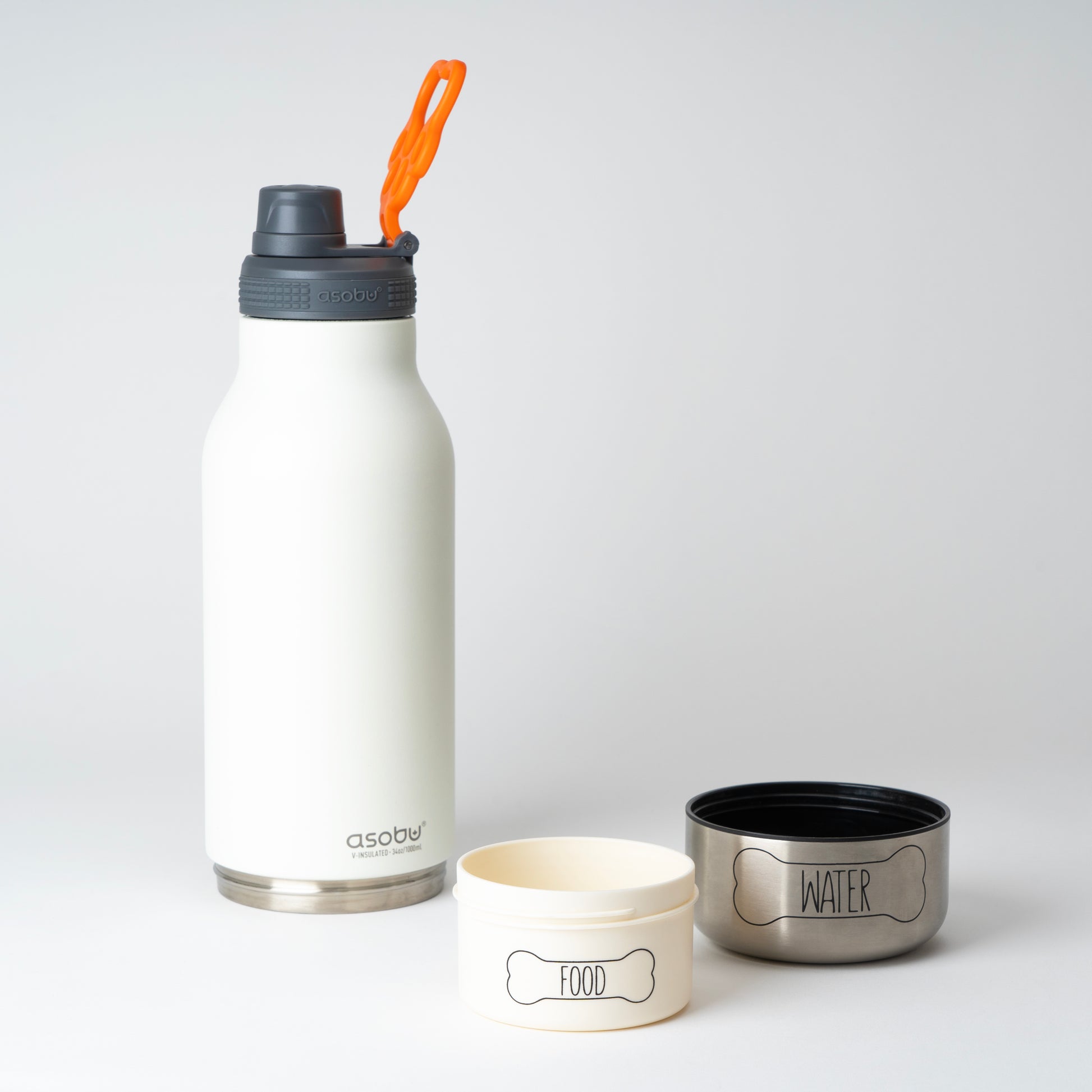 ウォーターボウルとフードコンテナ付のボトル。
