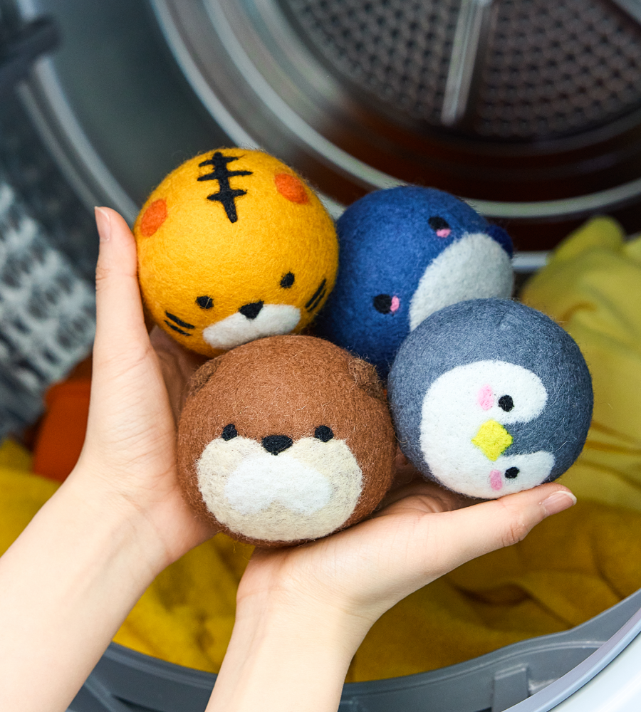 1. 製品の使用初期には、羊毛が一部抜け落ちる場合がございます。ご使用前に、乾燥機にドライヤーボールのみを入れて運転していただくと、製品が安定いたします。